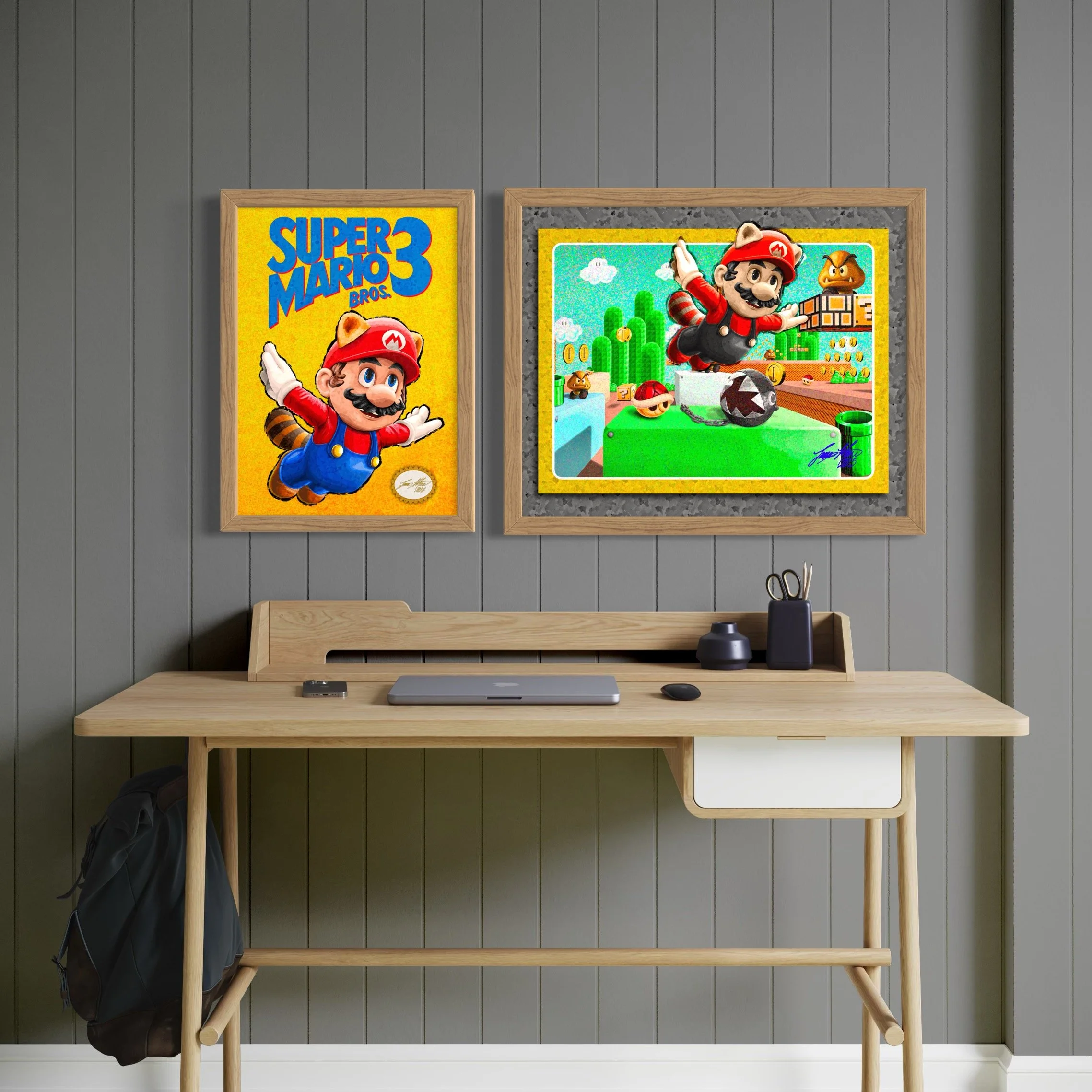 5×7 Digital art piece reimagining the cover art from Super Mario Bros. and Duck Hunt